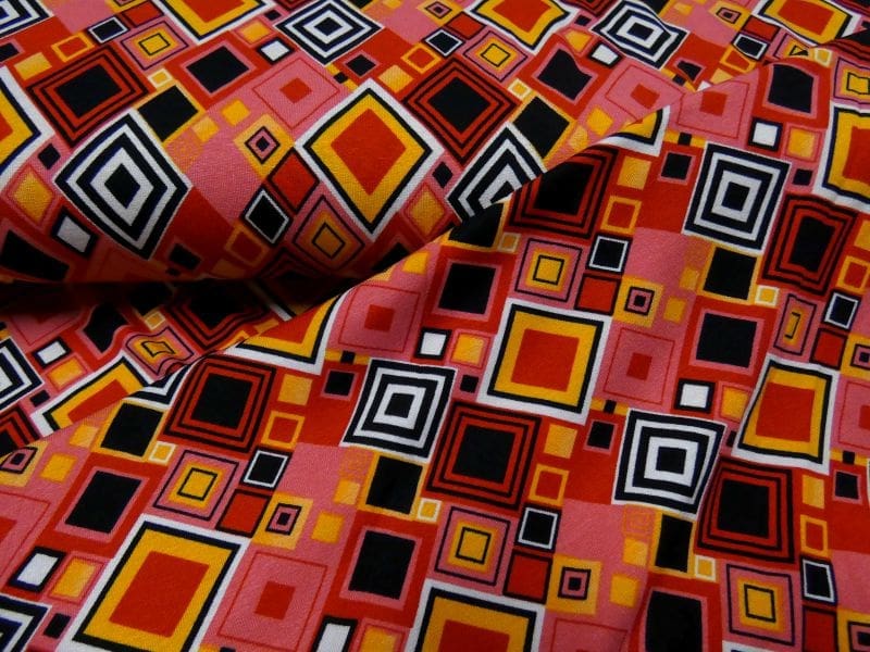 op voorraad, binnen 1-2 dagen in huis met grafische print bedrukte tricot in rood tinten Deze leuke bedrukte tricot is voor 95% viscose en 5% elasthan, kreukherstellend en comfortabel in het dragen. Deze met grafische print bedrukte tricot in vrolijke rood tinten is een smaakmaker in elke voorjaar/zomer gardarobe. Gemakkelijk te combineren door de frisse kleuren, op een rode basis. Deze bedrukte tricot met grafisch dessin is ideaal om bijvoorbeeld een shirt of jurkje van te maken. En ook belangrijk, deze stof is zelf te wassen!