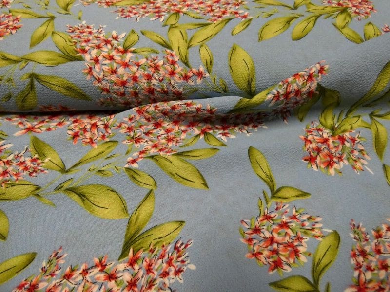 Deze heerlijk soepel vallende licht blauwe bubble chiffon met prachtig bloem dessin, is de ideale stof voor een overlay van een jurk, een blouse of een rok. Maar ook als basis voor een sjaal komt deze prachtige bloemen print goed uit. Oorspronkelijk vormde zijde de basis voor deze chiffon, maar omwille van duurzaamheid en gebruiksgemak maken we vandaag de dag gebruik van polyester.