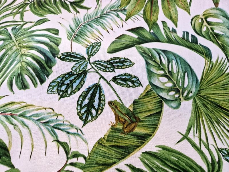 Zeer trendy botanische dessin is geprint op universele canvas stof, de 80%katoen/20%polyester samenstelling zorgt ervoor dat deze decoratie stof er ook na vele wasbeurten prachtig uitziet. Deze bedrukte canvas wordt veel gebruikt voor tafelkleden en kussens.