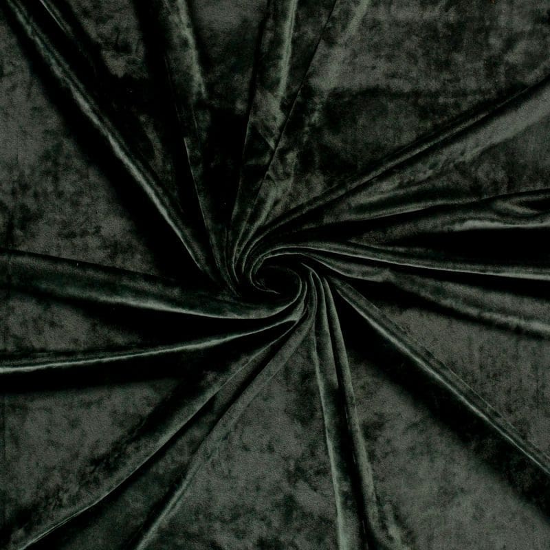 Deze prachtige kwaliteit stretch fluweel in deftige diep donker groene kleur, is een bi-stretch kwaliteit. De stretch velours voelt heerlijk zacht aan en valt soepel. Door de samenstelling van 92%polyester/8%elasthan, draagt deze stof fijn en is zelfwasbaar. Het is een luxe ogende stof, geschikt voor jasjes, broeken, topjes, jukjes en jumpsuits.