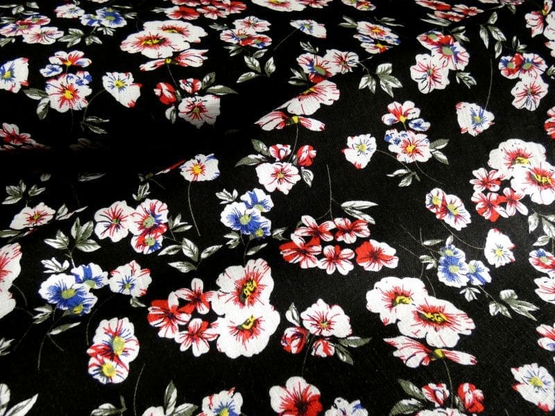 soepele gebloemde stretch viscose in basic zwart