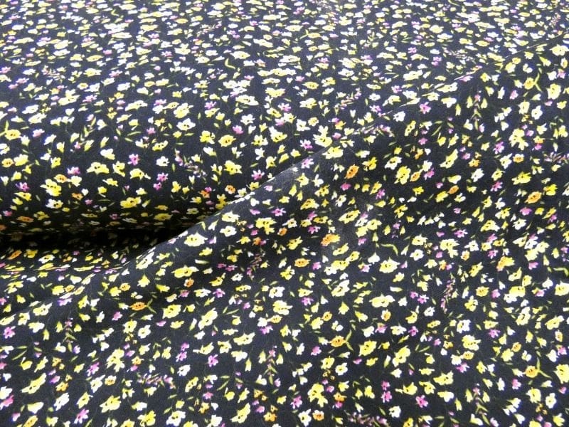 Deze zwarte gebloemde viscose stof is een must have voor een warme zomer dag. Ideaal voor een soepel vallend jurkje of blouse. Viscose is een stof die zich gemakkelijk laat wassen en vrijwel niet gestreken hoeft te worden, met een zachte touch en koel in het dragen.