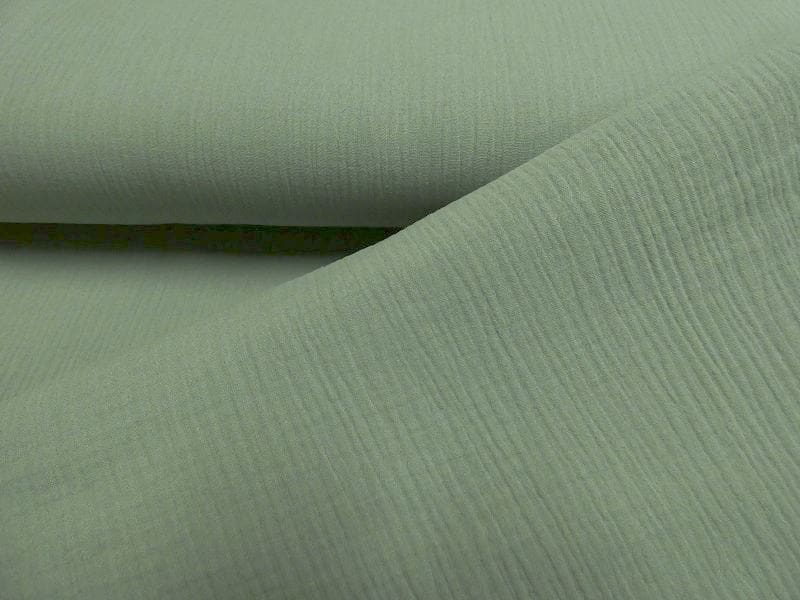 Mooie 100% katoen mousseline stof in populaire oud groene kleur. Heerlijk zachte hydrofiele stof om te gebruiken voor diverse toepassingen, makkelijk wasbaar en en sneldrogend. Deze trendy leger groen gekleurde mousseline is de ideale stof voor baby toepassingen zoals luiers, spuugdoekjes en dekentjes. Maar wordt ook veel gebruikt voor sjaals en vrije tijds kleding