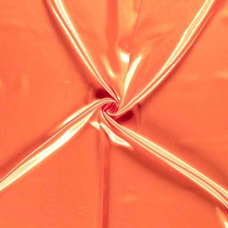 Deze signaal oranje satijn is de ideale stof voor verkleed kleding of decoratie. De satijn is volledig polyester en heeft een breedte van 147cm