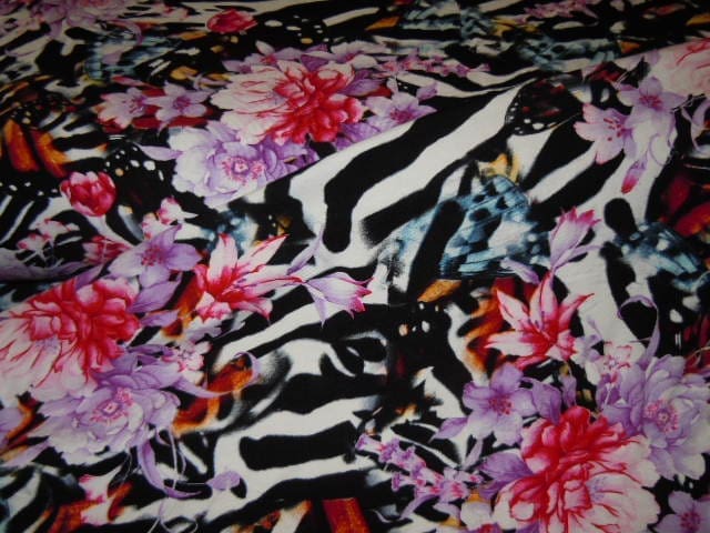 Tricot Jersey zebra flower fuchia
