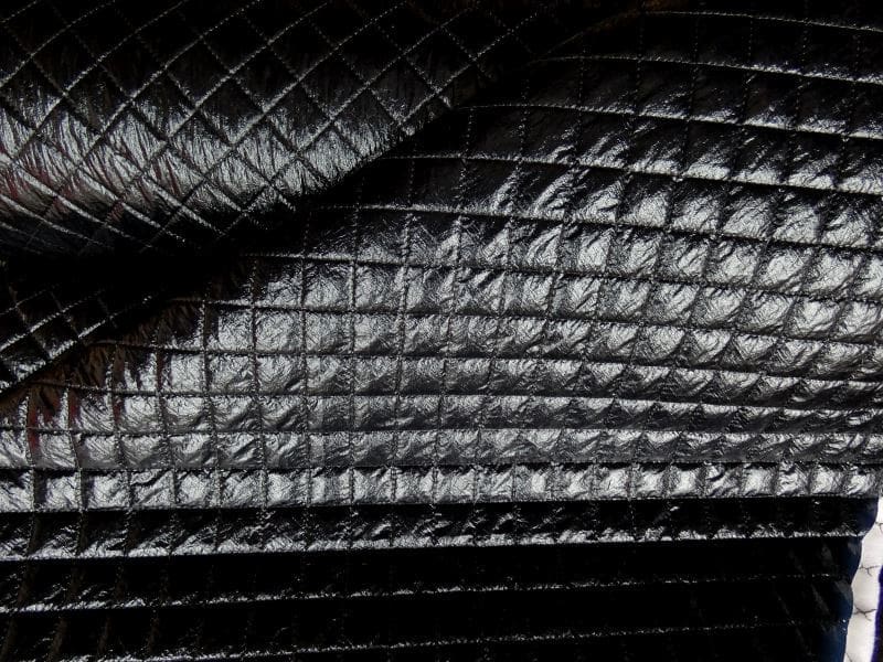 Mooie doorgetikte zawrte hoogglans folie stof. door getikte met een 100 gram wattine, leuk voor een opvallend jasje of leuke outfit